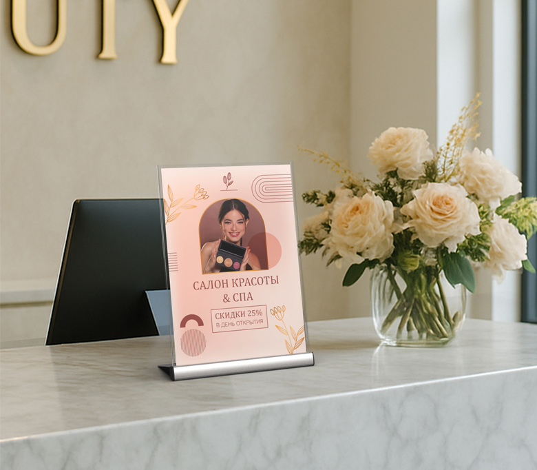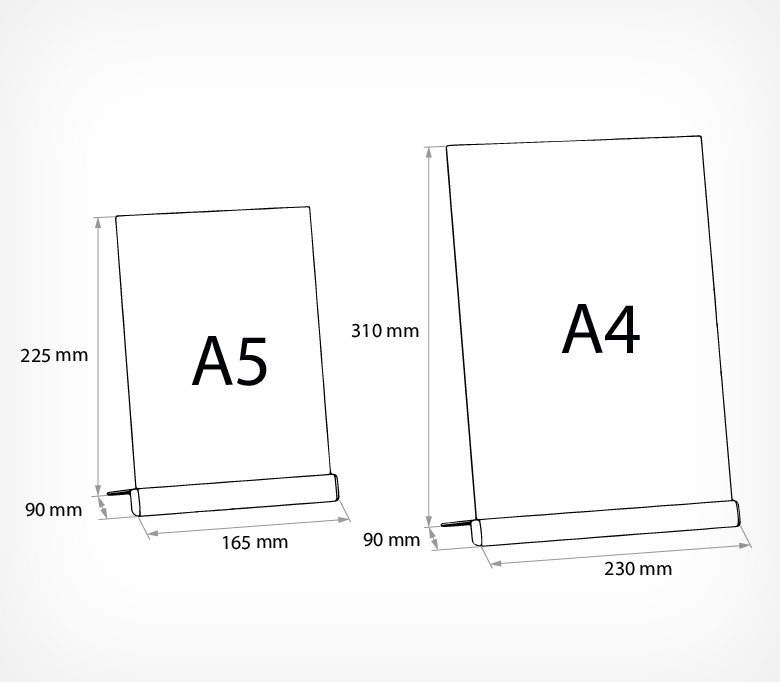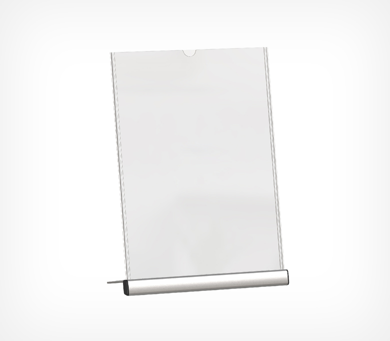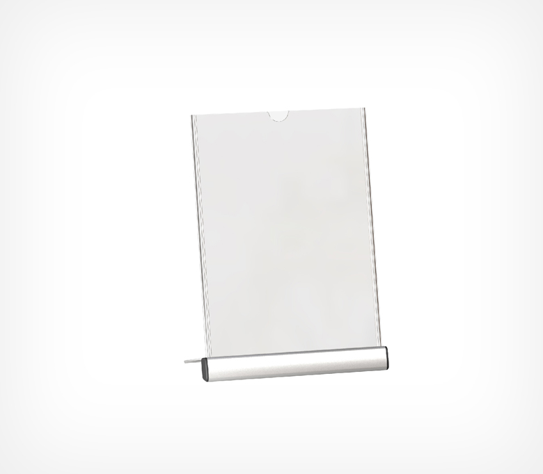 Менюхолдер SIGNHOLDER ALU-Stand — премиальная подставка с углом наклона 75°, обеспечивающая удобный обзор и современное отображение информации. Верхняя загрузка позволяет быстро заменять материалы, а прочное алюминиевое основание гарантирует устойчивость и долговечность. Выпускается в форматах A4 и A5. Используется в кафе, магазинах, аптеках и салонах красоты.