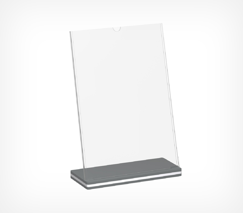 Менюхолдер SIGNHOLDER L-Stand — современная подставка с углом наклона 75°, обеспечивающая отличную видимость и привлекательную подачу информации. Верхняя загрузка делает замену материалов простой и быстрой, а пластиковое основание придаёт конструкции надёжность и устойчивость. Представлен в форматах A4 и A5. Применяется в кафе, магазинах, аптеках и салонах красоты.