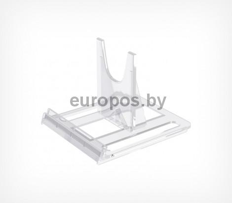 Универсальная сборная подставка под товар регулируется под разную толщину товара, что делает ее оптимальной для планшетов, смартфонов, печатных или электронных книг. Передний край подставки оснащен встроенным ценникодержателем.