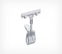 Основной компонент изделия - большая прищепка. Она позволяет закрепить информацию на краю полки, продукта, торгового оборудования, обеспечивая размещение ценника или рекламной вывески непосредственно возле товара.