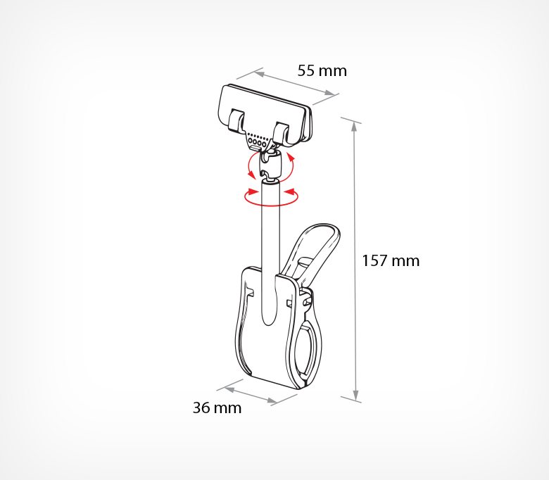 Держатель с большой прищепкой и поворотным механизмом на 360°. Вращающаяся верхняя часть позволяет направить информацию под любым углом прямо на покупателя. Надёжно крепится на трубы, короба и торцы стеллажей до 35 мм. Идеален для ценников, плакатов и вставок до 6 мм. Гибкое и эффективное решение для промо-зон, островной и временной выкладки, акций, сезонных товаров.