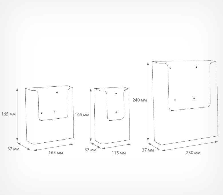 Карманы-буклетницы на один карман для печатной продукции трёх форматов А5, А4 и 1/3 А4.