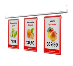 Подвесные системы позволяют использовать торговую площадь магазина максимально эффективно. Именно подвешивание профилей с информационными или рекламными плакатами может обеспечить удобное и быстрое информирование потребителей. Такие системы привлекают внимание за счёт своих размеров и ярких цветов.