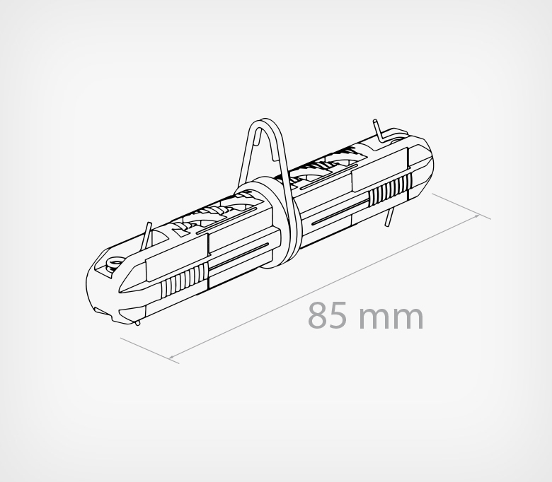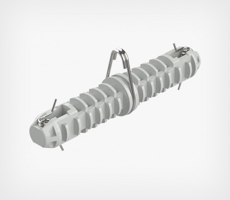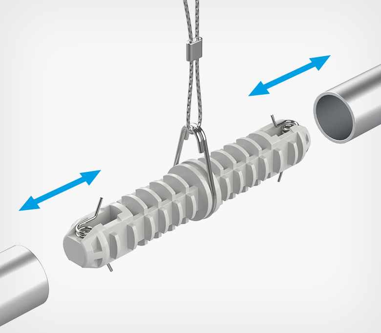 сдвух профилей в одну удлинённую конструкцию. Изготовлен из прочного пластика и оснащён встроенной металлической петлей и пружиной, обеспечивающими фиксированное крепление внутри трубок. Петля позволяет легко подвесить систему AIRTRACK к потолку с помощью металлического троса или цепи, упрощая монтаж.