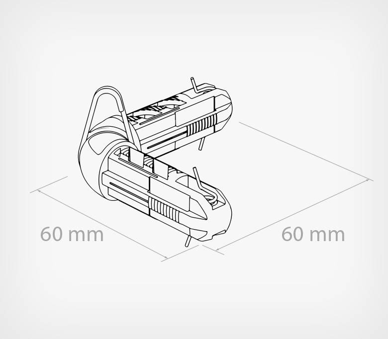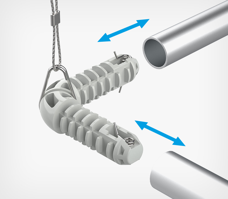 Соединитель пластиковый AIR-L-FIX предназначен для формирования угловых соединений профилей системы AIRTRACK. Оснащён встроенной металлической петлей и пружиной, которые обеспечивают надёжную фиксацию внутри трубки. Петля позволяет легко и безопасно подвесить систему к потолку с помощью троса или цепи, упрощая установку. Используя четыре соединителя и трубки нужной длины, можно собрать прочную прямоугольную подвесную конструкцию.