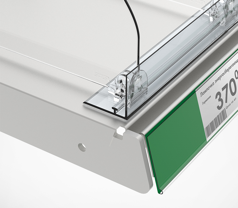 Комплексное решение – L-образный ограничитель товара высотой 30 мм с Т-образным профилем для крепления разделителей к полке. Удобен для формирования выкладки небольших товаров в упаковках, в том числе плоских – колготки, ушные палочки, шоколадные плитки и т.д. На выбор предлагается крепление профилей на скотч или магнит.